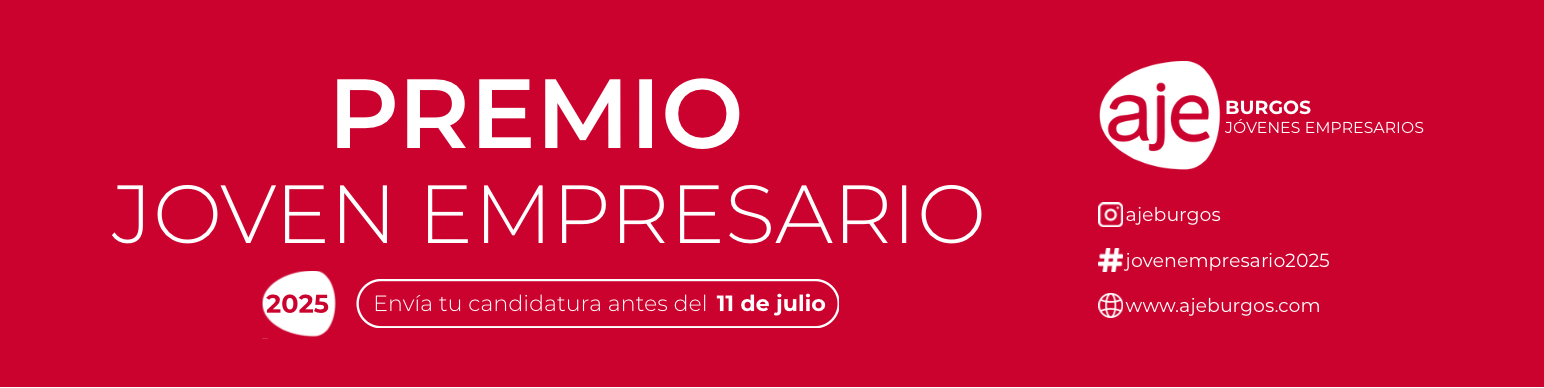 La Asociación de Jóvenes Empresarios de Burgos (AJE Burgos), junto a nuestro socio la Fundación Caja de Burgos, el Ayuntamiento de Burgos y la Diputación Provincial de Burgos, lanza nueva convocatoria de este premio que pretende apoyar y visibilizar el talento de los emprendedores burgaleses. ¿Quién puede presentarse? Emprendedores y autónomos menores de 41…